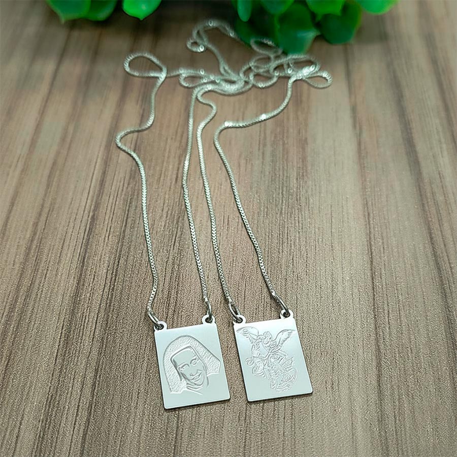 Escapulários personalizados em prata legítima, criados com elegância, propósito e muito significado. Grave nomes, datas ou mensagens especiais e transforme fé em presente.